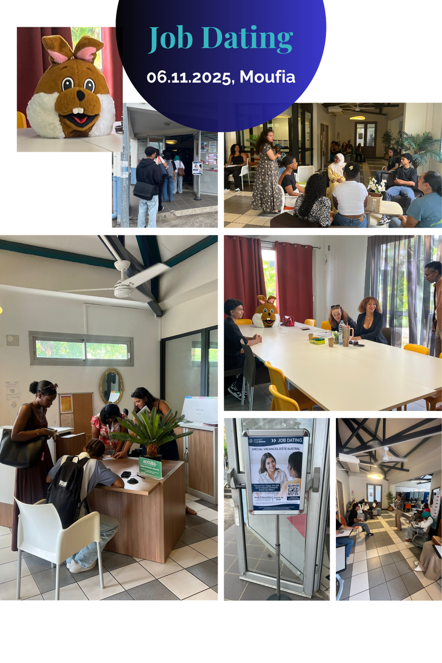 Tout au long de la matinée, futurs étudiants et proches ont pu découvrir les formations proposées sur le campus du Tampon, échanger avec les équipes pédagogiques et les étudiants, et s’informer sur les parcours et débouchés. Des animations ont également rythmé la journée, offrant un moment convivial et dynamique à l’ensemble des participants.